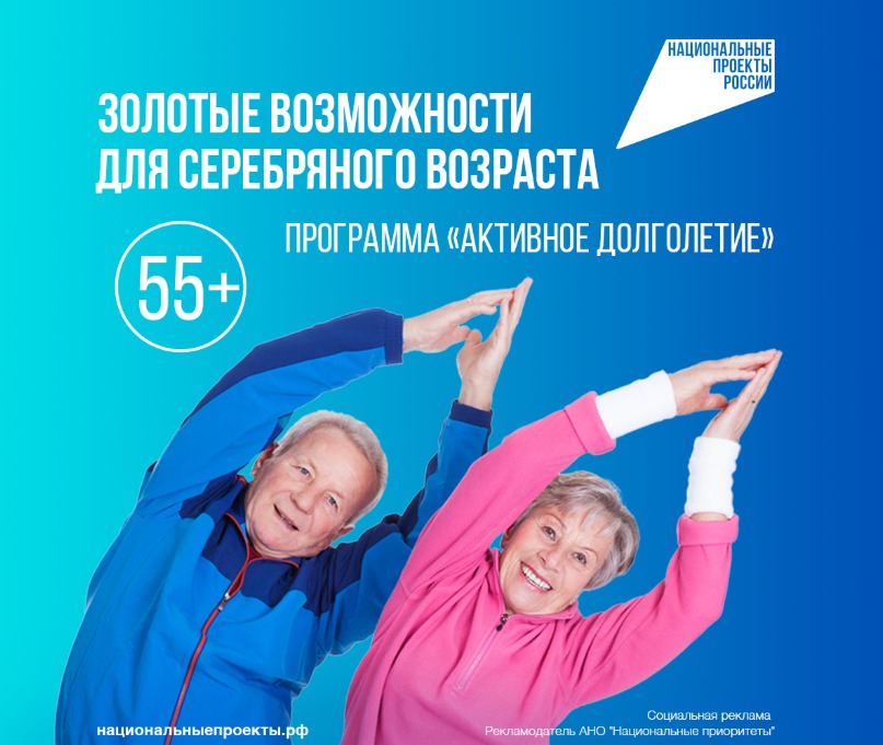 Создание условий для активного долголетия и улучшение качества жизни людей старшего возраста – важные направления национального проекта «Семья», который стартовал в этом году. Творческие студии, образовательные курсы, спортивные клубы и многое другое – все это становится доступным для старшего поколения благодаря программе «Активное долголетие», которая развивается при поддержке национального проекта «Семья». Выбрать занятие по душе можно в ближайшем центре активного долголетия, центре общения старшего поколения или центре социального обслуживания населения.